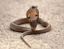 A juvenile Indian cobra, perhaps India's most recognized snake. This species is a member of the Big Four, a group of snakes traditionally held responsible for the majority of fatalities on the Indian subcontinent.