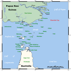 The Bramble Cay melomys was described in 2002 as Australia 's most isolated mammal.[15][17] The cay is located in the northeastern portion of the Torres Strait, approximately 50 kilometres (31 mi) from the mouth of the Fly River in Papua New Guinea. The cay is between 4 and 5 hectares (9 7⁄8 and 12 3⁄8 acres), but the rodent only occupied the vegetated portion of the island, measuring approximately 2 hectares (5 acres).[15] The vegetation of the island comprises grasses and herbs, generally shorter than 0.4 metres (1 ft 4 in).