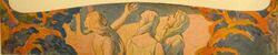 The god Odin has been a source of inspiration for artists working in fine art, literature, and music. Fine art depictions of Odin in the modern period include the pen and ink drawing Odin byggande Sigtuna (1812) and the sketch King Gylfe receives Oden on his arrival to Sweden (1816) by Pehr Hörberg; the drinking horn relief Odens möte med Gylfe (1818), the marble statue Odin (1830) and the colossal bust Odin by Bengt Erland Fogelberg, the statues Odin (1812/1822) and Odin (1824/1825) by Hermann Ernst Freund, the sgraffito over the entrance of Villa Wahnfried in Bayreuth (1874) by R. Krausse, the painting Odin (around 1880) by Edward Burne-Jones, the drawing Thor und Magni (1883) by K. Ehrenberg, the marble statue Wodan (around 1887) by H. Natter, the oil painting Odin und Brunhilde (1890) by Konrad Dielitz, the graphic drawing Odin als Kriegsgott (1896) by Hans Thoma, the painting Odin and Fenris (around 1900) by Dorothy Hardy, the oil painting Wotan und Brünhilde (1914) by Koloman Moser, the painting The Road to Walhall by S. Nilsson, the wooden Oslo City Hall relief Odin og Mime (1938) and the coloured wooden relief in the courtyard of the Oslo City Hall Odin på Sleipnir (1945–1950) by Dagfin Werenskiold, and the bronze relief on the doors of the Swedish Museum of National Antiquities, Odin (1950) by Bror Marklund.[93]