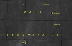 Finsch is a relatively small lunar impact crater in the mid-part of Mare Serenitatis that has been almost completely (other than the crest of the rim) covered by the mare, forming a ghost crater in the lava plain. It was named after German zoologist Otto Finsch.[1] It is located to the south-southeast of the crater Sarabhai and northeast of Bessel.