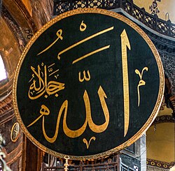 Allah's absolute supremacy is also constantly affirmed by another common Muslim saying, the Takbir, "Allahu akbar" (Arabic: ٱللَّٰهُ أَكْبَرُ).[13] The takbir is a reminder that Allah is greater than all things, and it's said during prayers, festivals, and in certain social situations of either distress or joy.