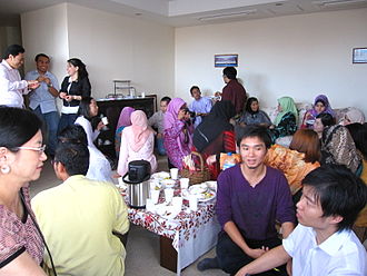 Muslims are meant to participate in the fast in order to build self-discipline, practice obedience to God, and experience empathy for the starving poor.[43] At the end of the fast, Muslims celebrate Eid ul-Fitr, a festival which celebrates the end of the fast and thanks God for helping Muslims through it.[44] Presumably quite hungry at this point, Muslims partake in a daytime feast with friends and family.