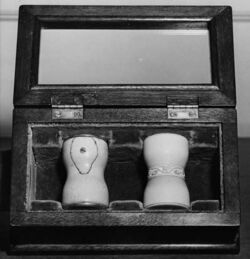 The unique gavel of the United States Senate has an hourglass shape and no handle. In 1954, the gavel that had been in use since at least 1834 (and possibly since 1789) broke when Vice President Richard Nixon used it during a heated debate on nuclear energy, despite the addition of silver plates to strengthen it two years prior.[14] The Senate was unable to obtain a piece of ivory large enough to replace the gavel, so they appealed to the Indian embassy. Later that year, India's Vice President Sarvepalli Radhakrishnan visited the Senate and presented a replica of the original gavel to Nixon.[15] In response to widespread awareness of elephant poaching and illegal ivory trades, a white marble gavel has been in use since at least 2021.