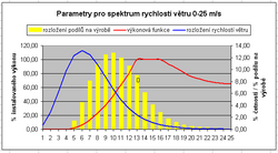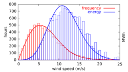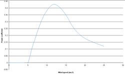 where [math]\displaystyle{ C_P }[/math] is the coefficient of power, [math]\displaystyle{ \rho }[/math] is the air density, A is the area of the wind turbine, and V is the wind speed.[1]
