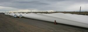 Equation (1) shows two important dependents. The first is the speed (U) of the machine. The speed at the tip of the blade is usually used for this purpose, and is written as the product of the blade radius r and the rotational speed of the wind: [math]\displaystyle{ U=\omega r }[/math], where [math]\displaystyle{ \omega }[/math] is the rotational velocity in radians/second).[please clarify] This variable is nondimensionalized by the wind speed, to obtain the speed ratio: