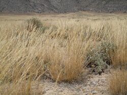 Poa secunda (variously known by the common names of Sandberg bluegrass,[2][3][4] alkali bluegrass,[4] big bluegrass,[4] Canby's bluegrass,[2] Nevada bluegrass,[4] one-sided bluegrass,[3] Pacific bluegrass,[2] pine bluegrass,[2] slender bluegrass,[2] wild bluegrass,[4] and curly bluegrass[1]) is a widespread species of perennial bunchgrass native to North and South America.[4] It is highly resistant to drought conditions, and provides excellent fodder;[3] and has also been used in controlling soil erosion,[4] and as revegetator,[4] often after forest fires.[6] Cultivars include 'Canbar', 'Service', 'Sherman', and 'Supernova'.[7] Historically, indigenous Americans, such as the Gosiute of Utah, have used P. secunda for food.[8] It was originally described botanically in 1830 by Jan Svatopluk Presl, from a holotype collected from Chile by Thaddäus Haenke in 1790.[2]