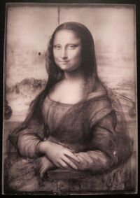 Infrared reflectography[45] can be applied to paintings to reveal underlying layers in a non-destructive manner, in particular the artist's underdrawing or outline drawn as a guide. Art conservators use the technique to examine how the visible layers of paint differ from the underdrawing or layers in between (such alterations are called pentimenti when made by the original artist). This is very useful information in deciding whether a painting is the prime version by the original artist or a copy, and whether it has been altered by over-enthusiastic restoration work. In general, the more pentimenti, the more likely a painting is to be the prime version. It also gives useful insights into working practices.[46] Reflectography often reveals the artist's use of carbon black, which shows up well in reflectograms, as long as it has not also been used in the ground underlying the whole painting.