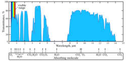 IR is commonly divided between longer-wavelength thermal IR, emitted from terrestrial sources, and shorter-wavelength IR or near-IR, part of the solar spectrum.[3] Longer IR wavelengths (30–100 μm) are sometimes included as part of the terahertz radiation band.[4]