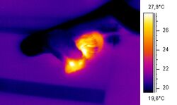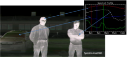 The use of infrared light and night vision devices should not be confused with thermal imaging, which creates images based on differences in surface temperature by detecting infrared radiation (heat) that emanates from objects and their surrounding environment.[32]