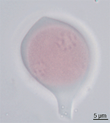 Pollen of Lilium auratum showing single sulcus (monosulcate)