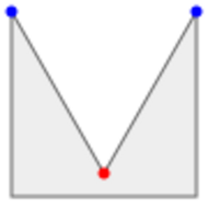 In geometry, an anthropomorphic polygon is a simple polygon with precisely two ears and one mouth. That is, for exactly three polygon vertices, the line segment connecting the two neighbors of the vertex does not cross the polygon. For two of these vertices (the ears) the line segment connecting the neighbors forms a diagonal of the polygon, contained within the polygon. For the third vertex (the mouth) the line segment connecting the neighbors lies outside the polygon, forming the entrance to a concavity of the polygon.[1]