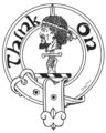 The Scottish crest badge of Clan MacLellan featuring the head of Black Morrow