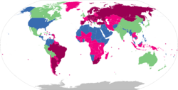 In several countries the 12-hour clock is the dominant written and spoken system of time, predominantly in nations that were part of the former British Empire, for example, the United Kingdom , Republic of Ireland, the United States , Canada (excluding Quebec), Australia , New Zealand, South Africa , India , Pakistan , and Bangladesh, and others follow this convention as well, such as Mexico and the former American colony of the Philippines . In most countries, however, the 24-hour clock is the standard system used, especially in writing. Some nations in Europe and Latin America use a combination of the two, preferring the 12-hour system in colloquial speech but using the 24-hour system in written form and in formal contexts.