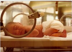 ![]() A premature infant in an incubator. 1978, USA |
