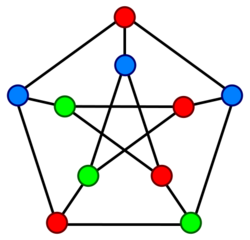 A proper (vertex) coloring of a graph [math]\displaystyle{ G }[/math] is a coloring of the vertices of [math]\displaystyle{ G }[/math] such that no two adjacent vertices have the same color. The minimum number of colors needed to properly color [math]\displaystyle{ G }[/math] is called the chromatic number of [math]\displaystyle{ G }[/math], denoted [math]\displaystyle{ \chi(G) }[/math]. Determining the chromatic number of specific graphs is a fundamental question in extremal graph theory, because many problems in the area and related areas can be formulated in terms of graph coloring.[2]