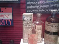 Since the 1860s, Jamaica ginger had been widely sold at drug stores and roadside stands in two-ounce (57 g) bottles.[1][2][3] In small doses, mixed with water, it was used as a remedy for headaches, upper respiratory infections, menstrual disorders, and intestinal gas.[1][2] Despite its strong ginger flavour, it was popular as an alcoholic beverage in dry counties in the United States, where it was a convenient and legal method of obtaining alcohol.[1] It was often mixed with a soft drink to improve the taste.[1]