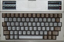 The RoadRunner's keyboard sports 73 keys, 14 of which are reserved for function (colored light tan and dark tan, respectively). The key switches are full-travel and of the linear variety,[6] while the keyboard layout is modeled after that of the IBM Selectric typewriter.[3] The key caps are concavely sculpted and have a matte finish.[6]