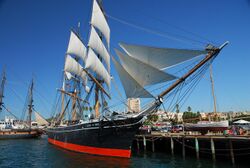 Star of India is an iron-hulled sailing ship, built in 1863 in Ramsey, Isle of Man as the full-rigged ship Euterpe. After a career sailing from Great Britain to India and New Zealand, she was renamed, re-rigged as a barque, and became a salmon hauler on the Alaska to California route. Retired in 1926, she was restored as a seaworthy museum ship in 1962–3 and home-ported at the Maritime Museum of San Diego in San Diego, California. She is the oldest ship still sailing regularly and also the oldest iron-hulled merchant ship still afloat.[4] The ship is both a California Historical Landmark and United States National Historic Landmark.[3][2][5]