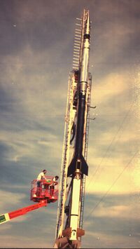 MSSTA and its sister rocket, NIXT, were prototypes for normal incidence EUV imaging telescopes that are in use today, as well as the historic EIT instrument aboard the SOHO spacecraft, and the TRACE spacecraft. MSSTA flew three times: once in 1991 (NASA Sounding Rocket flight 36.049), once in 1994 (flight 36.091),[2] and once in 2002 (flight 36.194).[3] While Dr. Walker's 1991 telescope was the first in the series to carry the MSSTA moniker, the precursor to the MSSTA, the Stanford/MSFC Rocket Spectroheliograph (NASA Sounding Rocket flight 27.092), which carried two EUV telescopes in 1987, was the first mission to successfully obtain high-resolution, full-disk solar images utilizing normal incidence EUV optics[4] . The MSSTA I flown in 1991 carried 14 telescopes; the MSSTA II flown in 1994 carried 19 telescopes; and the MSSTA III flown in 2002 carried 11 telescopes.