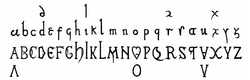 Attention should be drawn at the outset to certain fundamental definitions and principles of the science. The original characters of an alphabet are modified by the material and the implements used. When stone and chisel are discarded for papyrus and reed-pen, the hand encounters less resistance and moves more rapidly. This leads to changes in the size and position of the letters, and then to the joining of letters, and, consequently, to altered shapes. We are thus confronted at an early date with quite distinct types. The majuscule style of writing, based on two parallel lines, ADPL, is opposed to the minuscule, based on a system of four lines, with letters of unequal height, adpl. Another classification, according to the care taken in forming the letters, distinguishes between the set book-hand and the cursive script. The difference in this case is determined by the subject matter of the text; the writing used for books (scriptura libraria) is in all periods quite distinct from that used for letters and documents (epistolaris, diplomatica). While the set book-hand, in majuscule or minuscule, shows a tendency to stabilise the forms of the letters, the cursive, often carelessly written, is continually changing in the course of years and according to the preferences of the writers.