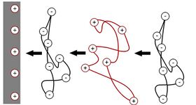 From Handwiki Adsorption of polyelectrolytes on solid substrates is a surface phenomenon where long-chained polymer molecules with charged groups (dubbed polyelectrolytes) bind to a surface that is charged in the opposite polarity. On the molecular level, the polymers do not actually bond to the surface, but tend to "stick" to the surface via intermolecular forces and the charges created by the dissociation of various side groups of the polymer. Because the polymer molecules are so long, they have a large amount of surface area with which to contact the surface and thus do not desorb as small molecules are likely to do. This means that adsorbed layers of polyelectrolytes form a very durable coating. Due to this important characteristic of polyelectrolyte layers they are used extensively in industry as flocculants, for solubilization, as supersorbers, antistatic agents, as oil recovery aids, as gelling aids in nutrition, additives in concrete, or for blood compatibility enhancement to name a few.[1]