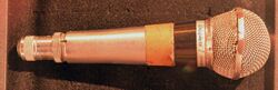 One of Shure's most visually iconic microphone series is the Unidyne series, seen in use by heads of state and popular recording artists and performers from the 1940s through the end of the twentieth century, including President John F. Kennedy, Ella Fitzgerald, and Frank Sinatra. The Model 55 Unidyne is pictured with Harry S. Truman in the photograph where he is holding the Chicago Tribune newspaper with the erroneous front-page headline "Dewey Defeats Truman". It is also pictured in front of Fidel Castro on the cover of the January 19, 1959, issue of Life magazine[15] and in front of Martin Luther King Jr. as he delivered his "I Have a Dream" speech during the August 1963 March on Washington for Jobs and Freedom. The original Shure 55 Unidyne microphone was designed by engineer Ben Bauer and first produced in 1939.[14] Shure designed the 55 Unidyne as a rugged public address microphone with good audio performance. It was notable for its single-element, unidirectional design, which was smaller, less susceptible to feedback, and less sensitive to ambient noise than other microphones of the time. Several variants of the original Unidyne have been produced, most notably the 55S or "Baby Unidyne".[2] The 55S is sometimes referred to as the "Elvis mic" due to its frequent use by Elvis Presley, and is the microphone depicted with Elvis on the commemorative first-class Elvis stamp issued by the U.S. Postal Service[16] in 1993.[17] In 2008, the Unidyne Model 55 microphone was inducted into the TECnology Hall of Fame,[18] and the following year, Shure released the 55SH Series II.[19] A supercardioid version, the Super 55 Deluxe Vocal Microphone, was introduced in 2009, featuring high gain before feedback and excellent off-axis rejection and further extending Unidyne's 70-plus year legacy.[20] The 55 Series microphones were given the "IEEE Milestone" award in 2014.[21]