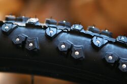 Car, motorcycle and bicycle tires with tungsten carbide studs provide better traction on ice. They are generally preferred to steel studs because of their superior resistance to wear.[42]