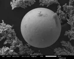 Another meta-stable compound of tungsten and carbon can be created by heating the WC phase to high temperatures using plasma, then quenching in inert gas (plasma spheroidization).[15] This process causes macrocrystalline WC particles to spheroidize and results in the non-stoichiometric high temperature phase WC1-x existing in a meta-stable form at room temperature. The fine microstructure of this phase provides high hardness (2800-3500 HV) combined with good toughness when compared with other tungsten carbide compounds. The meta-stable nature of this compound results in reduced high temperature stability.