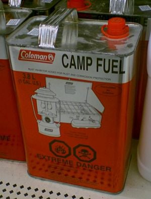 Naphtha is known by various names, depending on its source, composition, uses, and manufacturing company. Some names include ligroin, VM&P Naphtha (Varnish Makers and Painter's Naphtha,[1] Benzin, petroleum naphtha, petroleum spirits, and naphtha ASTM. Another name is shellite (Australia)—also known as white gas (North America), white spirit, or Coleman fuel—which is a white liquid with a hydrocarbon odor. Given its high flammability and low flashpoint (less than -30 °C), it is used in many low-pressure camping stoves. Ronsonol is a brand name used in North America and is marketed as a refill fluid for cigarette lighters.