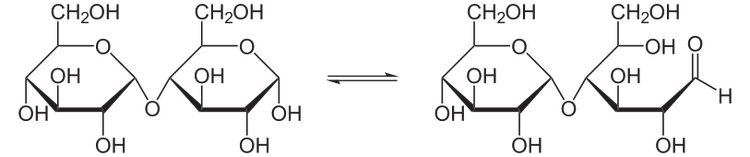 Many disaccharides, like cellobiose, lactose, and maltose, also have a reducing form, as one of the two units may have an open-chain form with an aldehyde group.[6] However, sucrose and trehalose, in which the anomeric carbon atoms of the two units are linked together, are nonreducing disaccharides since neither of the rings is capable of opening.[5]
