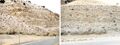 Unnamed upper member, saline facies, Green River Formation, along U.S. Highway 191 in lower Indian Canyon, Duchesne County, Utah. Left: typical exposure; right: exposure in roadcut.