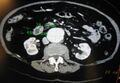 | CT reconstruction image of an abdominal aortic aneurysm (white arrows) |