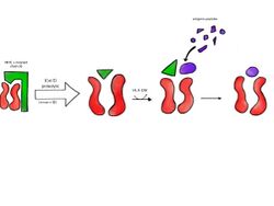 During MHC II assembly in the endoplasmic reticulum, the invariant chain polypeptide complexes with MHC II heterodimers. In a late endosome/early lysosome, cathepsin S cleaves the invariant chain, leaving CLIP bound to the MHC II complex. In the presence of antigenic peptide fragments, HLA-DM partially binds to the MHC II peptide binding groove and acts as a catalyst, releasing CLIP and allowing peptides to bind. Antigenic peptides have a high affinity for the MHC II groove, and are readily exchanged for CLIP. This occurs in most cells expressing MHC II–however, in B cells, HLA-DO functions as the accessory protein. Both HLA-DM and HLA-DO interact with each other to act as chaperone proteins and prevent the denaturing of MHC II. MHC II with bound antigen is then transported to the plasma membrane for presentation.[2][3][4]