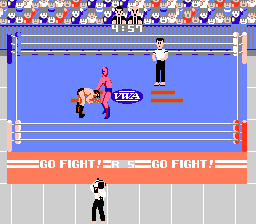 The player chooses a character from a roster of six wrestlers, each with a unique set of wrestling moves. In addition to punching, kicking, and running attacks, wrestlers may "lock up" with each other to execute body slams, piledrivers, and other professional wrestling moves. Wrestlers are also able to climb the top two turnbuckles for additional high-flying attacks. Matches are one-on-one, with no option for tag team bouts. Downed opponents may be hauled up from the mat, allowing the opponent a window to execute additional attacks, or may be pinned instead. As in professional wrestling, a wrestler who is pinned for a three count loses the match. One-player matches are timed, with the match being declared a draw if no pinfall occurs within the five-minute time limit.
