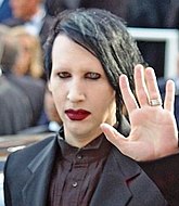 Marilyn Manson, born Brian Hugh Warner, (1969–) is an American rock musician. His stage name was formed by juxtaposing the names of two American cultural icons, namely actress Marilyn Monroe and murderer Charles Manson.[1][2][3] Manson generated controversy both for both his provocative image and lyrics, as well as for doing some things clearly in the name of stirring up controversy, like tearing up a Book of Mormon to spite religious leaders attempting to bribe him not to hold a concert in Utah. For this reason he is also commonly labelled a "shock-rocker". His lyrics reveal a fascination with death, violence, sex, authority, and celebrity. His artistic contributions to iconoclasm are often interpreted as anti-Christian, especially his 1996 anti-authoritarian concept album, Antichrist Superstar, though he says he has respect for many aspects of the religion. He received the honorary title of Reverend of the Church of Satan from founder and friend Anton LaVey, though he is not a Satanist himself. Manson does not believe in a God or gods, an atheist by definition despite not self-identifying as one.[4] He has also received much erroneous blame for causing youth school shootings and suicides.[5]