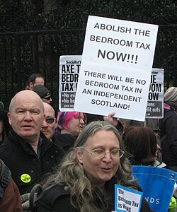 is an austerity measure that has attracted particular criticism, with activists arguing that two thirds of council houses affected by the policy are occupied with a person with a disability.[32]