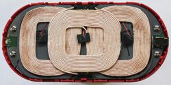 The WPC published the Qi low-power specification in August 2009.[7] The Qi specification can be downloaded freely after registration.[8] Under the Qi specification, "low power" inductive transfers deliver power below 5 W using inductive coupling between two planar coils. These coils are typically 5 mm apart but can be up to 40 mm and possibly farther apart.[2] The Qi low-power specification has been renamed to the Qi Baseline Power Profile (BPP).