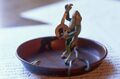 The playwright Henrik Ibsen had a small group of such characters which he referred to as his "devil orchestra"; a black boy climbing up a ladder on an elephant, a cat chewing another with rice twigs, singing after sheet music, writing, directing, devils pulling each other in wheelbarrows or carrying inkwells between them and a frog sitting on an ashtray playing the banjo. Ibsen used these as inspiration: "There should be Troll in what I write," he said.[3] Some of the characters were reported missing from the exhibitions on October 6, 1980, and were never returned. The rest of them are safely preserved at the playwright's desk in Ibsenmuseet in Oslo.