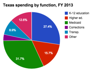 Texas spent approximately 27.4 percent of its budget on elementary and secondary education during fiscal year 2013. School system revenue came primarily from local funds. Texas spent a greater percentage of its total budget on public education than any of its neighboring states.