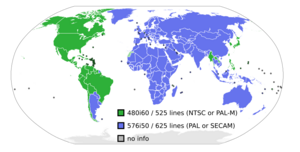 Standards that support digital SDTV broadcast include DVB, ATSC, and ISDB. The last two were originally developed for HDTV, but are also used for their ability to deliver multiple SD video and audio streams via multiplexing. In North America, digital SDTV is broadcast in the same 4:3 aspect ratio as NTSC signals, with widescreen content often being center cut.[1] However, the aspect ratio of widescreen content may be preserved in a 4:3 frame through letterboxing. In other parts of the world that used the PAL or SECAM color systems, digital standard-definition television is now usually shown with a 16:9 aspect ratio, with the transition occurring between the mid-1990s and late-2000s depending on region. Older programs with a 4:3 aspect ratio are broadcast with a flag that switches the display to 4:3.[lower-alpha 2]