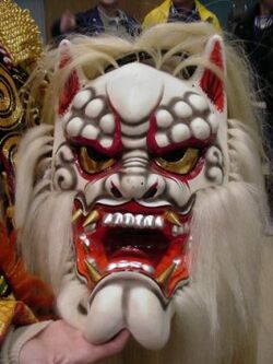 Kagura (神楽, かぐら, "god-entertainment") is a Japanese word referring to a specific type of Shinto theatrical dance—with roots arguably predating those of Noh. Once strictly a ceremonial art derived from kami'gakari (神懸, かみがかり, "oracular divinaification"), Kagura has evolved in many directions over the span of more than a millennium. Today it is very much a living tradition, with rituals tied to the rhythms of the agricultural calendar, as well as vibrant Kabuki-esque theatre, thriving primarily in parts of Shimane prefecture, and urban centers such as Hiroshima.[1]
