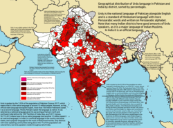 Geographical distribution of Urdu in India and Pakistan.