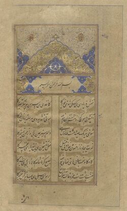 In 1715, a complete literary Diwan in Rekhta was written by Nawab Sadruddin Khan.[68] An Urdu-Persian dictionary was written by Khan-i Arzu in 1751 in the reign of Ahmad Shah Bahadur.[69] The name Urdu was first introduced by the poet Ghulam Hamadani Mushafi around 1780.[22][23] As a literary language, Urdu took shape in courtly, elite settings.[70][71] While Urdu retained the grammar and core Indo-Aryan vocabulary of the local Indian dialect Khariboli, it adopted the Perso-Arab writing system, written in the Nastaleeq style.[40][72] – which was developed as a style of Persian calligraphy.[73]