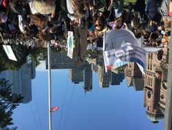 The September 2019 climate strikes, also known as the Global Week for Future, were a series of international strikes and protests to demand action be taken to address climate change, which took place from 20–27 September. The strikes' key dates were 20 September, which was three days before the United Nations Climate Summit, and 27 September.[3][4] The protests took place across 4,500 locations in 150 countries.[5][6] The event is a part of the school strike for climate movement, inspired by Swedish climate activist Greta Thunberg.[7][8]The Guardian reported that roughly 6 million people participated in the events,[1] whilst 350.org—a group that organised many of the protests—claim that 7.6 million people participated.[2]