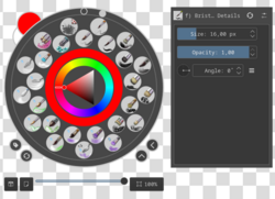 | 10 loaded brush presets | Colour ring selector | Zoom |