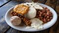 Bandeja paisa is a typical meal popular in Colombian cuisine. Paisa refers to the Paisa Region and bandeja is Spanish word for platter.