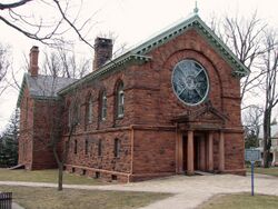 Though St. Lawrence today is nonsectarian, it was founded in 1856 by leaders of the Universalist Church, who were seeking to establish a seminary west of New England and were enthusiastically courted by the citizens of Canton. The church almost did not place the school in Canton, however, as they felt students might be exposed to too much "excitement" within the village limits in 1856. The denomination, which has since merged with the Unitarian faith, was part of the liberal wing of Protestantism, championing such ideas as critical thinking and sex equality — attributes that surfaced in the new Theological School of St. Lawrence University, which was progressive in its teaching philosophy and coeducational from the beginning.