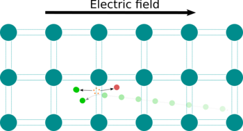 Impact ionization is the process in a material by which one energetic charge carrier can lose energy by the creation of other charge carriers. For example, in semiconductors, an electron (or hole) with enough kinetic energy can knock a bound electron out of its bound state (in the valence band) and promote it to a state in the conduction band, creating an electron-hole pair. For carriers to have sufficient kinetic energy a sufficiently large electric field must be applied,[1] in essence requiring a sufficiently large voltage but not necessarily a large current.