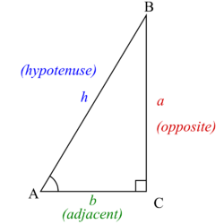 In order to define the trigonometric functions for the angle A, start with an arbitrary right triangle that contains the angle A:
