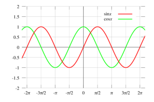 | Cosine | cos | [math]\displaystyle{ \cos \theta = \sin \left(\frac{\pi}{2} - \theta \right)\, }[/math] |